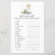 Voeg wat luchtig plezier toe aan je vrijgezellenfeest met deze elegante "Bridal Word Scramble"-spelkaart. Met een stijlvol champagneglas en een bloemontwerp van druivenranken, daagt dit spel gasten uit om trouwgerelateerde woorden te ontwarren in een race tegen de klok. Perfect voor het vermaken van gasten en het creëren van vreugdevolle herinneringen. Volledig aanpasbaar aan het thema van uw vrijgezellenfeest.