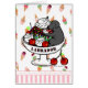 Carte de voeux noire drôle de Labrador. Un laboratoire noir mignon se repose dans le parfait géant de crème glacée et goûte la crème glacée de crème et de fouet et les cerises et la sauce délicieuse ! ! Conception noire de bande dessinée de Labrador pour les amoureux de les chiens qui aiment Labradors. Vous pouvez ajouter le texte ! Créé par Naomi Ochiai du Japon. Grands cadeaux d'amusement pour les amoureux de les chiens qui posséder Labradors noir.