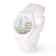 Originele hand geschilderd grillige Parijs en Eiffeltoren horloge. Waar je ook bent, houd Parijs in de buurt met deze grillige, handgeschilderde tekening van een dromerige Parijse morgen, Eiffeltoren in uitzicht door een prachtig Frans raam, compleet met cappuccino en een croissant. Perfect voor Franssprekenden die van Frankrijk houden en alles wat Frans inspireert. Parijs is altijd een goed idee!