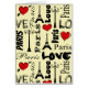 Paris design de texte pour la Saint-Valentin aux formes coeur rouge, Tour Eiffel et lampes de rue décoration arrière - plan jaune