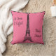 Ooh la la ! Un bel oreiller à jetons d'inspiration française se décline dans les tons rose parisien et noir profond. Illustration de la Tour Eiffel, avec les mots Le Tour D'Eiffel, et Paris, France. Les coussins sont disponibles en plusieurs tailles, formes et tissus.