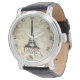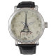 Dit prachtige Eiffeltoren mannen horloge is voorzien van de Eiffeltoren op een scriptachtergrond met een gotisch rood en grijs woord "Paris".