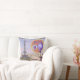 Dit is een schilderij van het landschap Parijs, Frankrijk, met de Eiffeltoren, met het woord Parijs, een roze poedel, en een hete luchtballon, van Kristie Hubler, voor deze kussen