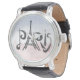 Het perfecte uurwerk voor de liefhebber van de "lichtstad". Paris geschreven in een logo stijl met de Eiffeltoren als de A op een zachte achtergrond van de Franse vlag kleuren: blauw, wit en rood. Vertel de tijd op de Parijse manier.