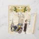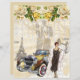 Het ontwerp van dit plakboekpapier bevat collage van de Parijse Eiffeltoren, London Bridge, floral, antiek car en een dame op de achtergrond van de muzieknoten.