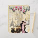 Het ontwerp van dit plakboekpapier bevat collage van de Parijse Eiffeltoren, London Bridge, floral, antiek car en een dame op de achtergrond van de muzieknoten.