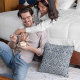 20 x 20 inch gooien kussens met aan beide zijden een afbeelding van Franse indigo en witte paisley. Zie het volledige collectie van dit & van de Pijl in de sectie van het Huis.