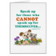 Ce carte pour notes montre une image de toutou et de MeeYow. Le texte est, "parlez pour ceux qui ne peuvent pas parler pour eux-mêmes. (Proverbes 31 : 8)." À l'intérieur de est vide. Une enveloppe blanche est incluse.