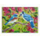 Un oiseau bleu et un geai bleu partagent une branche dans un arbre de myrte de crêpe.