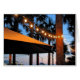 een reeks lichten, een grote paraplu, palmbomen in de avond bij Fort Walton Beach