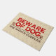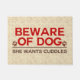 Pas op voor Dog. Ze wil knuffels. Grappig hondencitaat ontwerp. Humoureus gezegde voor hondeneigenaars. In vetgedrukte rode tekst met bruine pootafdrukken. De waarschuwingshond tekent een grappige parodie/parodie.