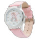 barokstijlletter A in pastelkleuren die perfect bij de roze band passen. Dit uurwerk zou een mooi verjaardags- of kerstcadeau zijn voor een jong meisje wiens naam begint met letter A.