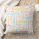 Pastel preppy glimlach gezichten ster aangepaste naam schattige preppy geïnspireerde grafische gepersonaliseerde naam kussen patroon ontwerp. Deze gedempte zachte aqua blue, roze, koraal, gele en schemerige roze tekst typografische deken kan ook worden aangepast met uw eigen korte naam, momenteel leest Sophie. Andere namen en kleuren beschikbaar of neem contact met me op voor naamverzoeken. Deze originele grafische lijnkunst met vrolijke lachende gezichten, vlinders, bloemen, regenboogstrepen en sterren en is ontworpen door Sarah Trett voor exclusief voor www.mylittleeden.com