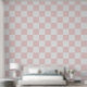 Geruite behang in pastelroze en witte kleur. Moderne minimalistische geometrische vierkante patroonschil en stokbehang.