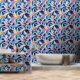 Pastelroze, blauwe en gele bladwerveling behang