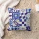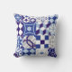 patchwork-achtergrond met traditioneel blauw kussen