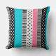 Patchwork gemaakt van veelkleurige stroken stof in roze, blauw en zwart en wit.