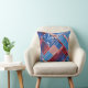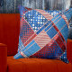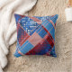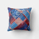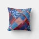 Hedendaags kussen met een door de VS geïnspireerd abstract ontwerp met blauwe jeans en artistieke rode en off white speelse patronen. Het patroon kan ook worden geroteerd of geschaald.
