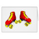 Une paire de patins de rouleau rouges avec les dentelles jaunes. Vous pouvez changer la couleur d'arrière - plan ou ajouter le texte pendant le contrôle.