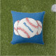 Ce coussin extérieur présente des balles de baseball rouges et blanches avec du texte bleu pour un thème patriotique. Personnalisez facilement le texte pour un fan de sport spécial ou supprimez entièrement. L'arrière - plan bleu peut être customisé à la couleur de votre choix.