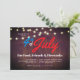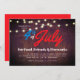 Deze 4 juli feestuitnodiging heeft een rustieke houten achtergrond met accenten aan de bovenkant met strings van lichtjes. Dit is perfect voor uw vrienden en of familie Fourth of July Barbeque feesten.