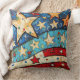 Een gestileerd en patriottisch werpkussen met sterren en rood, wit en blauw.