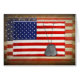 Militaire hondentags op lagen van Amerikaanse vlaggen en de Amerikaanse grondwet.