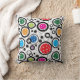 Sierkussen met kleurrijke handballetjes en zwarte cirkels op witte achtergrond. Perfect als cadeau voor een modieuze pickleballspeler. Gelukkig dragen en beste wensen voor uw toekomstige games!