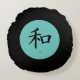 Ronde werpen kussen eigenschappen eenvoudig Japans kanji kalligrafiesymbool voor Vrede op aqua ronde.