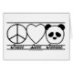Peace Love and Pandas. Een humoristische kijk op het thema Vrede en liefde voor iedereen die van Panda-Beren houdt. Eenvoudige zwarte en witte logo's met een vredes-, hart- en panda-beer gezicht op t-shirts, sweatshirts, mokken en nog meer cadeautjes en kledingartikelen van T's Me NEE! Pas het aan!