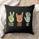 Dit gedurfde en moderne werpkussen heeft drie iconische handtekens: het vredesteken, het liefdeshandgebaar en een open handpalm die kunst symboliseert. Met zachte pasteltinten van groen, sinaasappel en crème tegen een zwarte achtergrond, levert dit ontwerp een eenvoudige maar krachtige boodschap: Peace, Love, Art. Perfect voor artiesten, creatieven en vrije geesten die positiviteit en inspiratie in hun ruimte willen brengen. Een stijlvol accent voor studio's, slaapkamers of woonkamers, en een doordacht cadeau voor kunstliefhebbers.