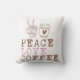 Een cool typografisch ontwerp voor koffieliefhebbers, met de tekst: Vrede, liefde, koffie.