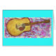 montre une guitare acoustique colorée avec patine jaune de l'art original ! aussi avec le slogan "PeaceLove Guitar"