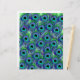 Dit 8,5-inch x 11-inch scrapbook papier bevat een breed patroon van pauw-veren in blues, purples en groenen op een bleke groene achtergrond. Rug is gewoon wit. Geweldig voor papierwerk, prekken met het thema bruiloft en labels.