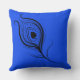 Drijf kussen met afbeelding pauw op voorzijde en silhouet van pauw-veer op achterzijde. Achtergrondkleuren in diep blauw.