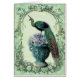Une jolie carte vintage présente un arrière - plan vert pastel de tourbillons et une bordure fleurie avec un Peacock perché sur une urne de fleurs d'Hydrangea. Carte à l'intérieur correspondant à l'arrière - plan vert doux.