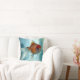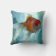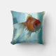 Foto van een oranje Pearlscale Oranda Goldfish, met een lichtblauwe achtergrond, aan beide zijden van een Pillow getoond.