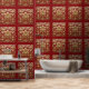 Peel en stick behang gouden bloemen patroon op rode achtergrond. Groot gemakkelijk doe-het-zelf project voor huurders huiseigenaren interieur ontwerpers. Creëer Een gepersonaliseerde look voor uw huis appartement kantoor of bedrijf. Versier kandelaars onderzetters meubels keuken achterkant deurpanelen hoofdeurbergingscontainers.