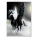 Een pegasus vliegt hoog boven de gloeiende wolken op een moonlit nacht, zonder de zorgen en zorgen die op de grond kunnen komen. Achter hem gloeit de volle maan helder en maakt het schepsel mysterieus. Is het een witte pegasus die in diepe hoogtepunten en schaduwen wordt geworpen of een zwart paard met verbijsterende witte reflectiepunten. Of is het, in werkelijkheid, een uitgekleed dier. In dit licht zullen we het misschien nooit weten.