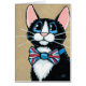Carte de voeux de chat de smoking comportant une peinture par Lisa Marie Robinson. L'illustration comporte une peinture d'un chat fier et pimpant de smoking portant une cravatte d'arc d'Union Jack. Perfectionnez pour des amoureux de les chats ! © Lisa Marie Robinson de copyright d'illustration. Tous droits réservés.