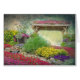 Jardin rocheux avec cascade et treillis fleuris.