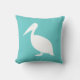 une partie de l'océan à thème décore PELICAN, BLANC sur coussin bleu turquoise d'un côté et bande turquoise et blanche de l'arrière.