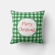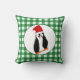 Penguin in Santa Hat Green Gingham Merry Kerstmis Kussen