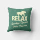 Coussin de cadeau de retraite avec la citation drôle. Au revoir pension de tension bonjour. Personnalisé avec votre message fait sur commande de l'arrière. Le double a dégrossi conception avec la conception tropicale de palmier. Présent mignon pour les hommes et les femmes réservés. Couleur personnalisable d'arrière - plan. vert d'IE. Faites un pour le collègue, l'employé, le collègue, le patron, l'ami, l'humour voisin de bureau etc. Plaisanterie relative du travail/travail.