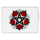 Pentagramme noir avec motif, décoré de fleurs, roses rouges avec feuilles sur arrière - plan blanc. Style tatouage.