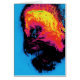 kleurrijk gekaard monsterhoofd dat in een zee blauw leeft in een staat van plastic