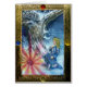 De zoektocht naar de Heilige Graal (Saint Graal) vormt een belangrijk deel van de legendes van koning Arthur. Colorful en levendig hedendaags olieslakken, miniatuur op houten panelen met gouden folie in bruine blauwe, rode, witte, bruine, gouden gele kleuren, 2010 van Alessandro Lumini . Dit coole en artistieke ontwerp is ook een prachtig cadeau voor Feestdagen met oost en kerstmis