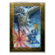La quête du Saint Graal (Saint Graal) constitue un segment important des légendes du roi Arthur.Peinture à l'huile contemporaine colorée et vibrante, miniature sur panneau en bois avec feuille dorée en bleu clair, rouge, blanc, marron, jaune or, 2010 par Alessandro Lumini. Ce design cool et artistique est aussi un beau cadeau pour Pâques et Noël