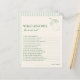 Vier de bruid-to-be met dit Perfect Pear-vrijgezellenfeest Who Knows the Bride Best-gamekaart, met handgetekende peren, zacht groen en elegante scripttypografie. Een leuke manier om gasten aan het lachen te krijgen en herinneringen te delen, dit peer thema vrijgezellenfeest spel daagt vrienden en familie uit om te zien wie de bruid het beste kent. Perfect voor rustieke, boerderij of tuin-geïnspireerde evenementen, dit vrijgezellenfeest activiteit kaart combineert prachtig met bijpassende peer uitnodigingen, borden en inrichting.