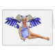 Dit zoete kleine meisje is gekleed in een schattige, blauwe gingham pinafore jurk, heeft blonde pigmenten en mooie blauwe vleugels gemaakt van bloempitten.